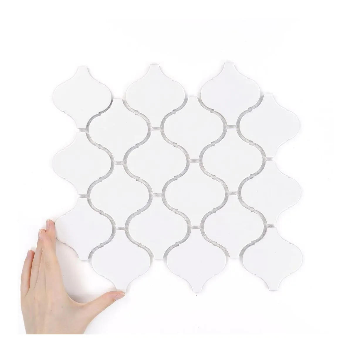 Die Inspiration für Arabesque Groß Weiß Matt stammt von Ornamenten, die Paläste und Gärten schmückten, wo das Arabeskenmotiv seit Jahrhunderten Harmonie, Schönheit und künstlerische Freiheit symbolisiert.
