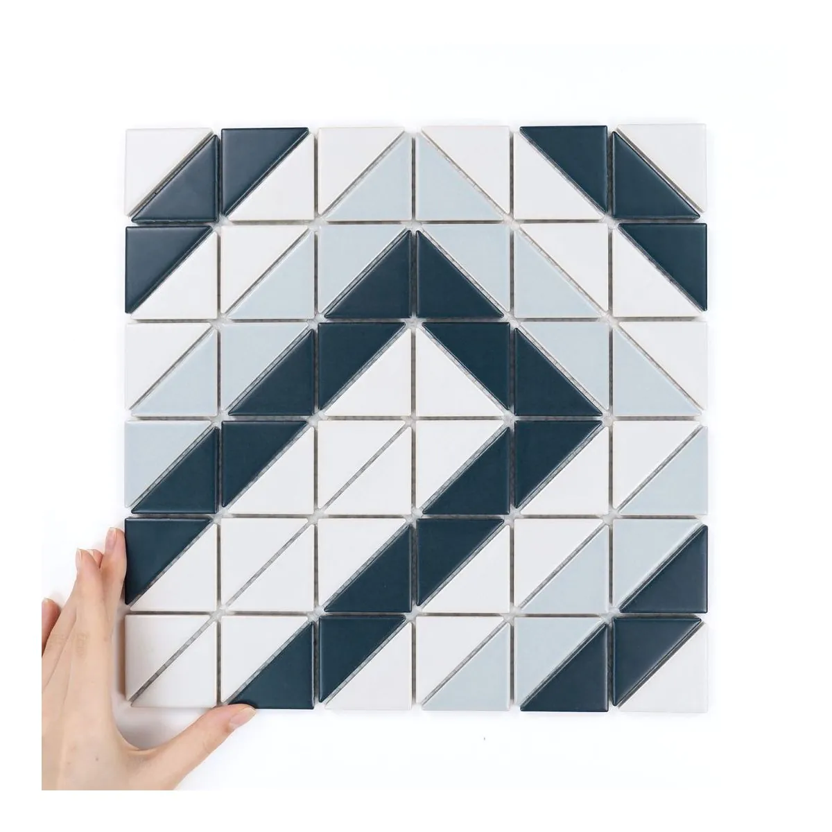 Die Kollektion Aztec ist eine moderne Interpretation geometrischer Patchworks, inspiriert von der Kunst und Ornamentik alter Zivilisationen. Mosaike aus kleinen Dreiecken fügen sich zu dynamischen, kontrastreichen Mustern zusammen, die dem Interieur einen markanten Rhythmus und originellen Charakter verleihen. Die Inspiration für Aztec Linear Blue Matt waren traditionelle Verzierungen und geometrische Motive, die in moderner Interpretation Frische und zeitlosen Stil gewonnen haben. Das Spiel mit Kontrasten und das modulare Layout machen die Kollektion zu einer idealen Dekoration für Wände und Böden.
