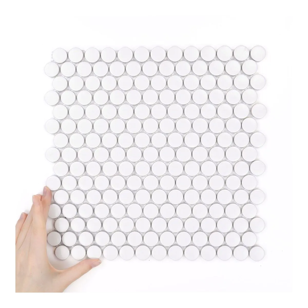 Die Kollektion Candy ist eine moderne und charmante Alternative zu klassischen Bodenmustern. Die Mosaikfliesen in Form kleiner Kreise erzeugen eine leichte, rhythmische Oberfläche, die sich sowohl für Böden als auch für Wände perfekt eignet. Inspiration für Candy Weiß Glänzend war die zeitlose Einfachheit geometrischer Formen, die in runder Ausführung Frische und einen feinen Charakter erhalten. Die originelle Form und die universelle Ästhetik machen diese Kollektion ideal für minimalistische, skandinavische sowie mutige, moderne Interieurs.