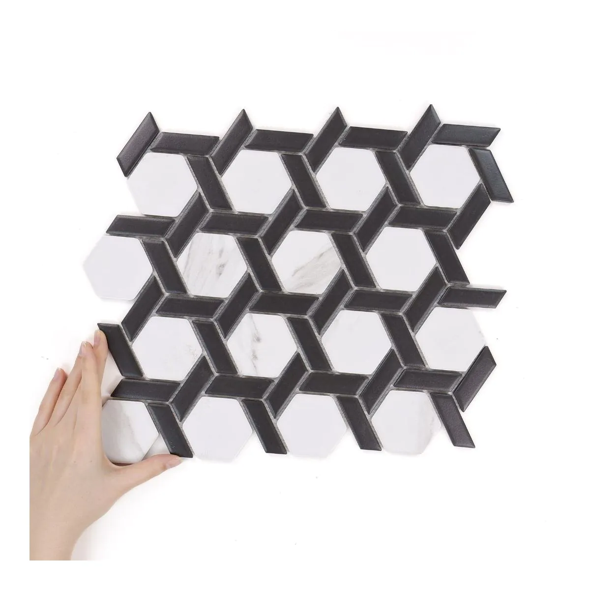 Fliese Heksagon Stella Schwarze & Marmor Matte