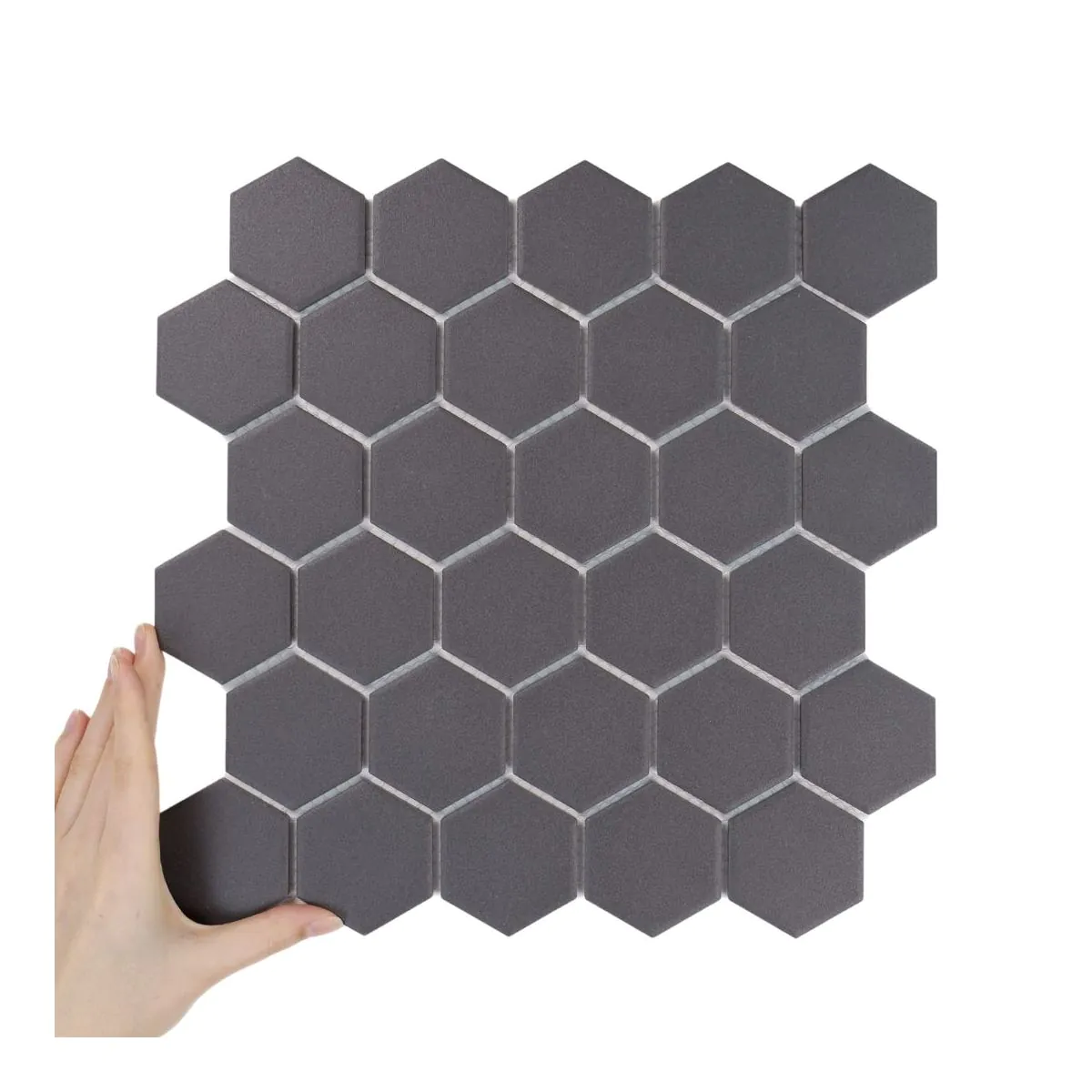 Regelmäßige sechseckige Fliesen, die auf Matten angeordnet sind, schaffen ein stimmiges und harmonisches Gesamtbild und bieten gleichzeitig vielfältige Gestaltungsmöglichkeiten.