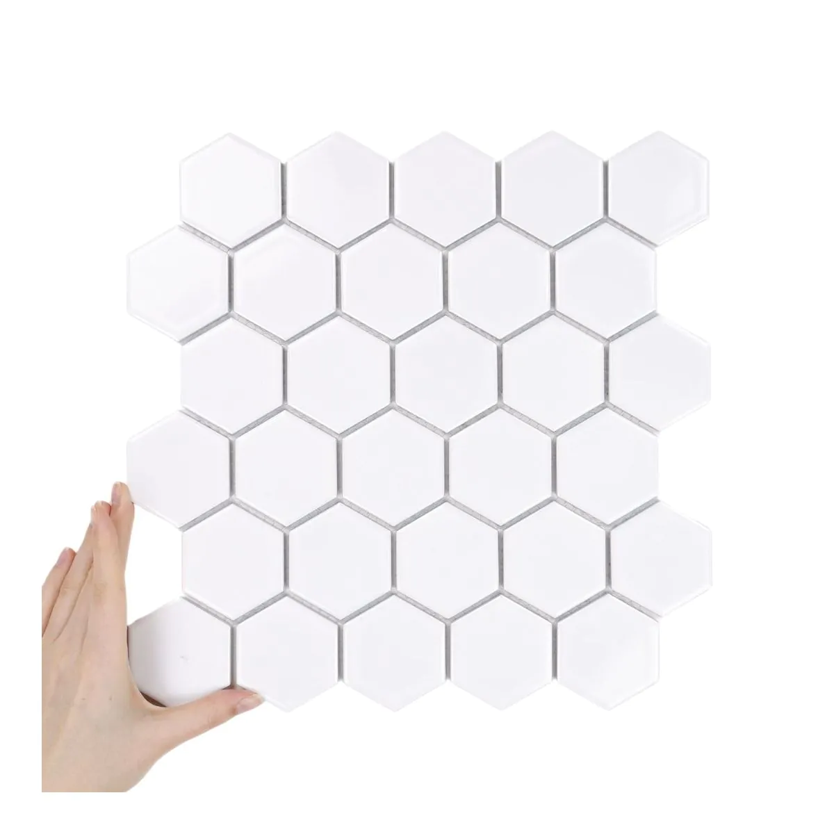 Die Inspiration für Hexagon Groß Weiß Glänzend stammt aus natürlichen Strukturen und architektonischen Motiven, in denen das Hexagon seit Jahrhunderten für Ordnung und Gleichgewicht steht.