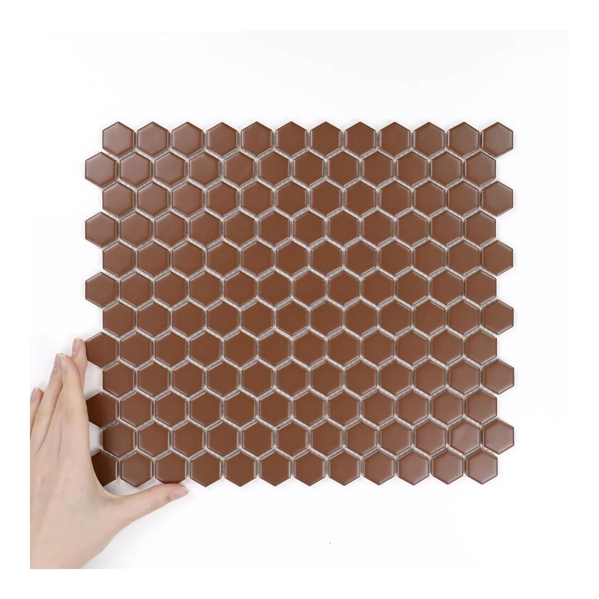 Die Inspiration für Hexagon Klein Braun Matt stammt aus natürlichen Strukturen und architektonischen Motiven, in denen das Hexagon seit Jahrhunderten für Ordnung und Gleichgewicht steht.